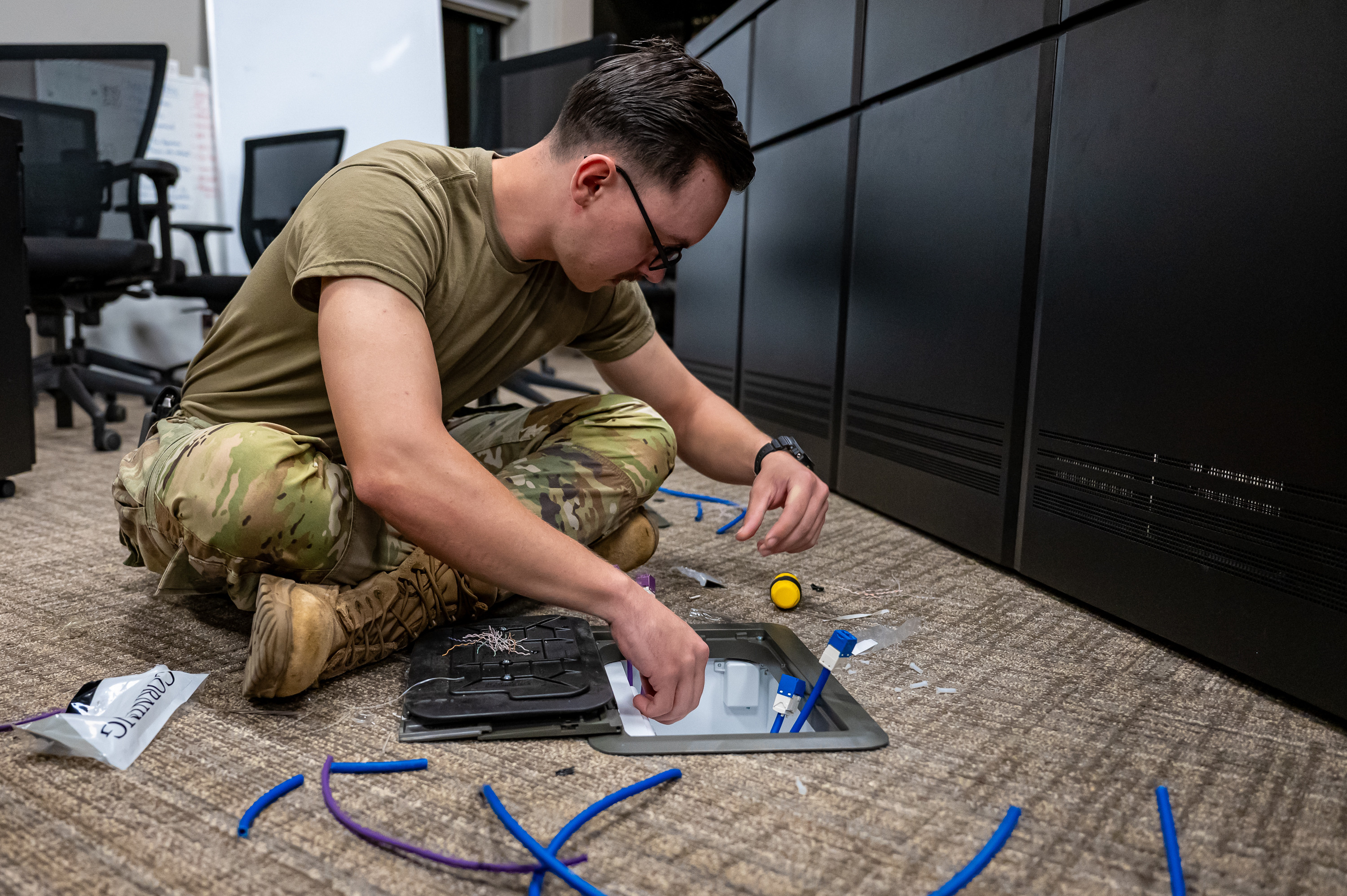 85th EIS completes high-speed infrastructure upgrades on Andersen Published Nov. 18, 2025 By Airman 1st Class Xavier Romero 36th Wing ANDERSEN AIR FORCE BASE, Guam -- The 70-day project doubled the endpoint network links for the base command and control operations nodes for exercises with coalition forces and missile defense by installing more than 15 feet of fiber-optic cable for non-classified networks, classified networks and allied partner communication channels. The upgrade enables base leadership to conduct critical discussions in a single, consolidated environment and will also allow them to return from the current alternate ICC location, the 36th Mission Support Group building. “The installation control center is the brain of the base,” said Staff Sgt. Declan Ballard, 85th EIS cyber transport systems team chief. “If there is a major weather alert or if the base is in a crisis, then this is where leadership goes to start disseminating information.” Ballard noted the upgrades not only reduce communication gaps for Airmen awaiting guidance from higher command, but also strengthen coordination with allies and partners by streamlining shared communication channels. With the project complete, Airman First Class William Bentley, 85th EIS cyber transport engineer noted a challenge that arose. “One of the challenges we faced was getting the floor tiles removed to access the cables,” Bentley said. “It took about four days just to cut through 50 tiles that are made of concrete and metal. It was difficult, but we overcame it.” The 85th EIS has been engineering projects at Andersen since June 2024 and began the implementation in January 2025, totaling 26 projects. The squadron rapidly engineers, plans, installs and restores cyberspace and expeditionary communications capabilities in contested and uncontested areas to enable Air Force and joint operations. Out of the 15 Air National Guard Engineering Installation squadrons, the 85th is the only active-duty squadron. The team working on the ICC infrastructure upgrades arrived July 2025 during a request for forces (RFF) rotation with the 356th Expeditionary Theatre Support Group, Along with the ICC upgrades, the 85th EIS installed more than 15,000 feet of 48-strand, single-mode fiber-optic cable – about the length of 50 football fields – to support the 36th Munitions Squadron’s Vindicator Alarm Systems, an intrusion detection system (IDS), at munitions storage sites and other systems such as radio networks, navigational aids and Defense Biometric Identification Systems. “The new fiber allows the IDS to be more dependable and reduce nuisance or false alarm responses for our squadron,” said Mark Enaje, a police officer assigned to the 36th Security Forces Squadron. “It reduces the need for increased patrols and facility checks year-round.” The existing fiber had limited capacity, so the upgrade ensures the systems can continue operating if the primary line fails. The squadron is scheduled to return to their home duty station, Keesler Air Force Base, Mississippi in January 2026. Other 85th EIS members are scheduled to replace the current team in another RFF rotation and work on similar projects in the Indo-Pacific.