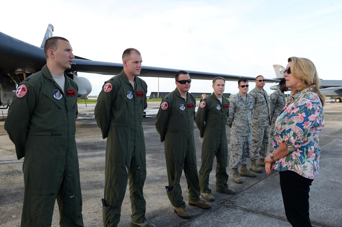 SECAF visits Andersen Published Sept. 5, 2016 By Airman 1st Class Arielle Vasquez 36th Wing Public Affairs ANDERSEN AIR FORCE BASE, Guam -- During her visit, James learned more about the mission of the 34th Expeditionary Bomb Squadron while they are deployed executing the Continuous Bomber Presence mission.