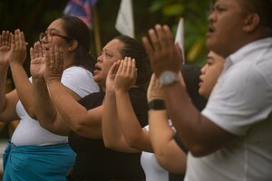 U.S. Air Force Brig. Gen. Paul Birch, 36th Wing commander, receives a brief about agile combat employment by Master Sgt. Gabriel Hayashi, 36th Contingency Response Squadron production superintendent, during an immersion tour at Andersen Air Force Base, Guam, June 23, 2022. Birch was briefed on CRS