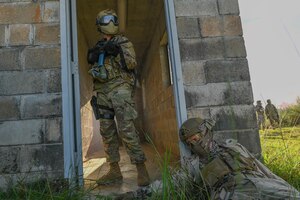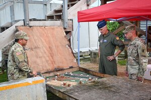U.S. Air Force Brig. Gen. Jeremy Sloane, commander of the 36th Wing, meets with U.S. Army soldiers assigned to the 38th Air Defense Artillery Brigade, during Operation Iron Island at Site Armadillo, Nov. 17, 2021. The purpose of Operation Iron Island is to test the Iron Dome, an effective,