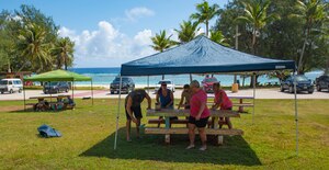 U.S. Air Force Tech. Sgt. Adam Rodgers, NCO in charge of installation security assigned to the 36th Security Forces Squadron, peers at the coastline during a routine jungle patrol on Andersen Air Force Base, Guam April 16, 2021. The 36th SFS patrols AAFB to deter trespassing, poaching, and to check
