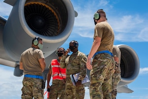 Paratroopers from the 4th Infantry Brigade Combat Team (Airborne), 25th Infantry Division, United States Army Alaska, parachuted onto Guam early in the morning as part of their Emergency Deployment Readiness Exercise from Joint Base Elmendorf-Richardson, Alaska today.