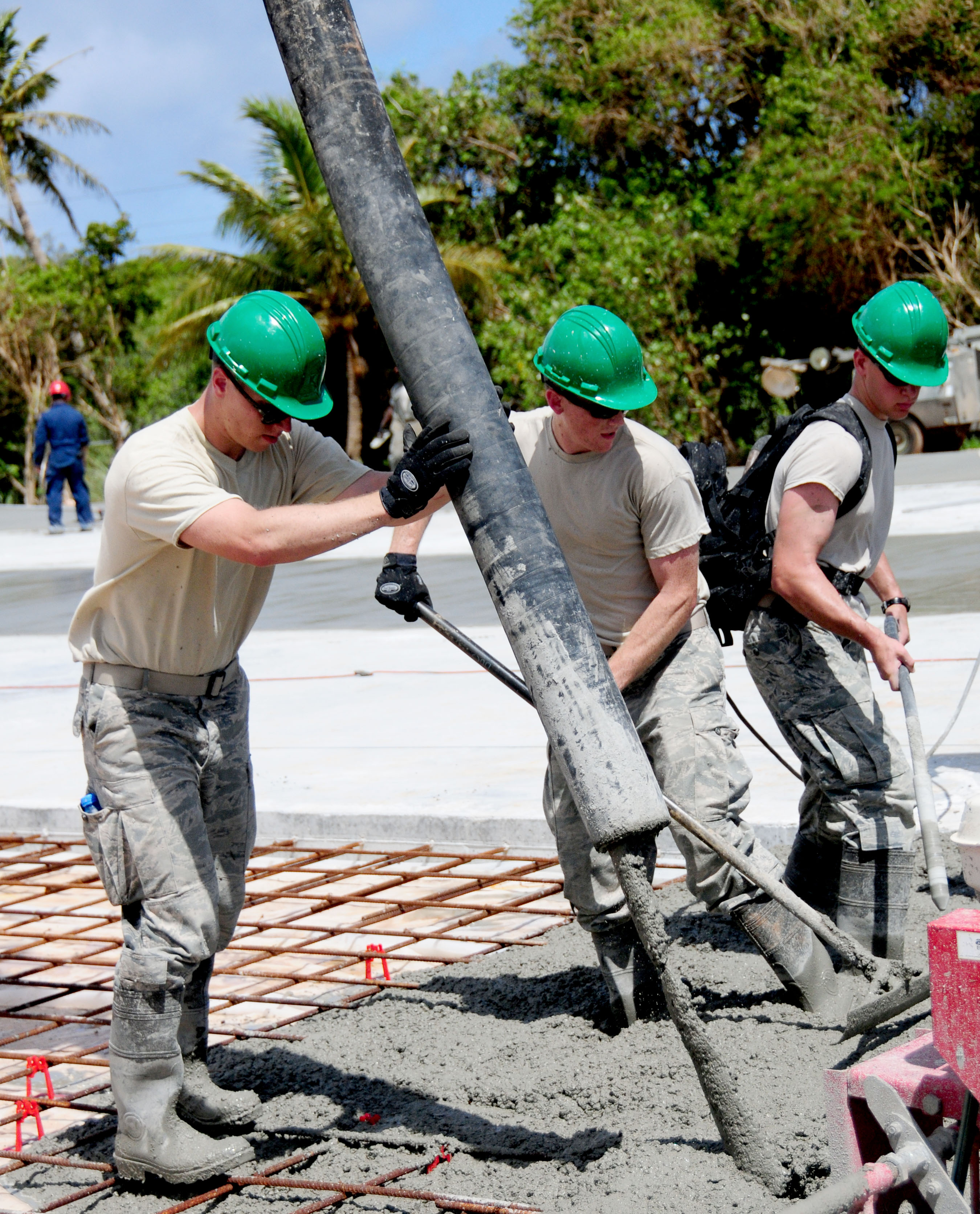 ANDERSEN AIR FORCE BASE, Guam- United States Air Force Academy cadets pour concrete during a day spent working with the 554th Red Horse Squadron May 31. The USAFA cadets are part of the Field Engineering and Readiness Laboratory program for cadets with an engineering major. (U.S. Air Force photo by Senior Airman Jeffrey Schultze/Released)