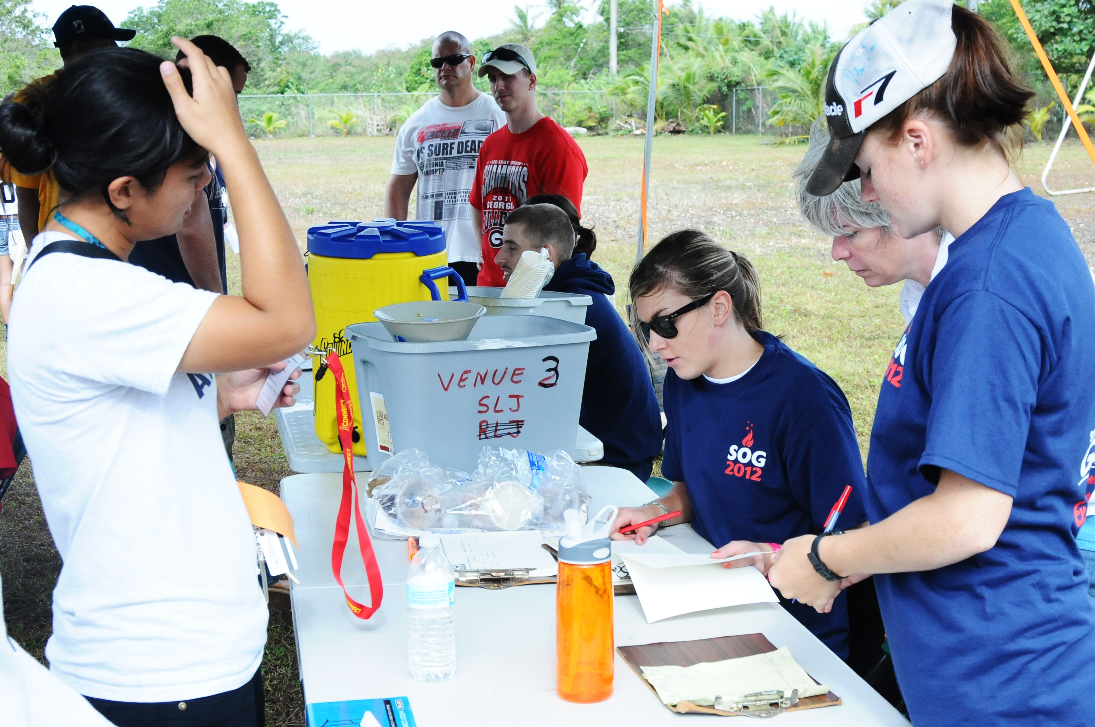 ANDERSEN AIR FORCE BASE, Guam – Members of Team Andersen check- in athletes at the run, jump event during the Special Olympics Track and Field, March 17. Volunteers were provided by all military branches on island who made sure the event goes smoothly. (U.S. Air Force photo/Senior Airman Carlin Leslie)