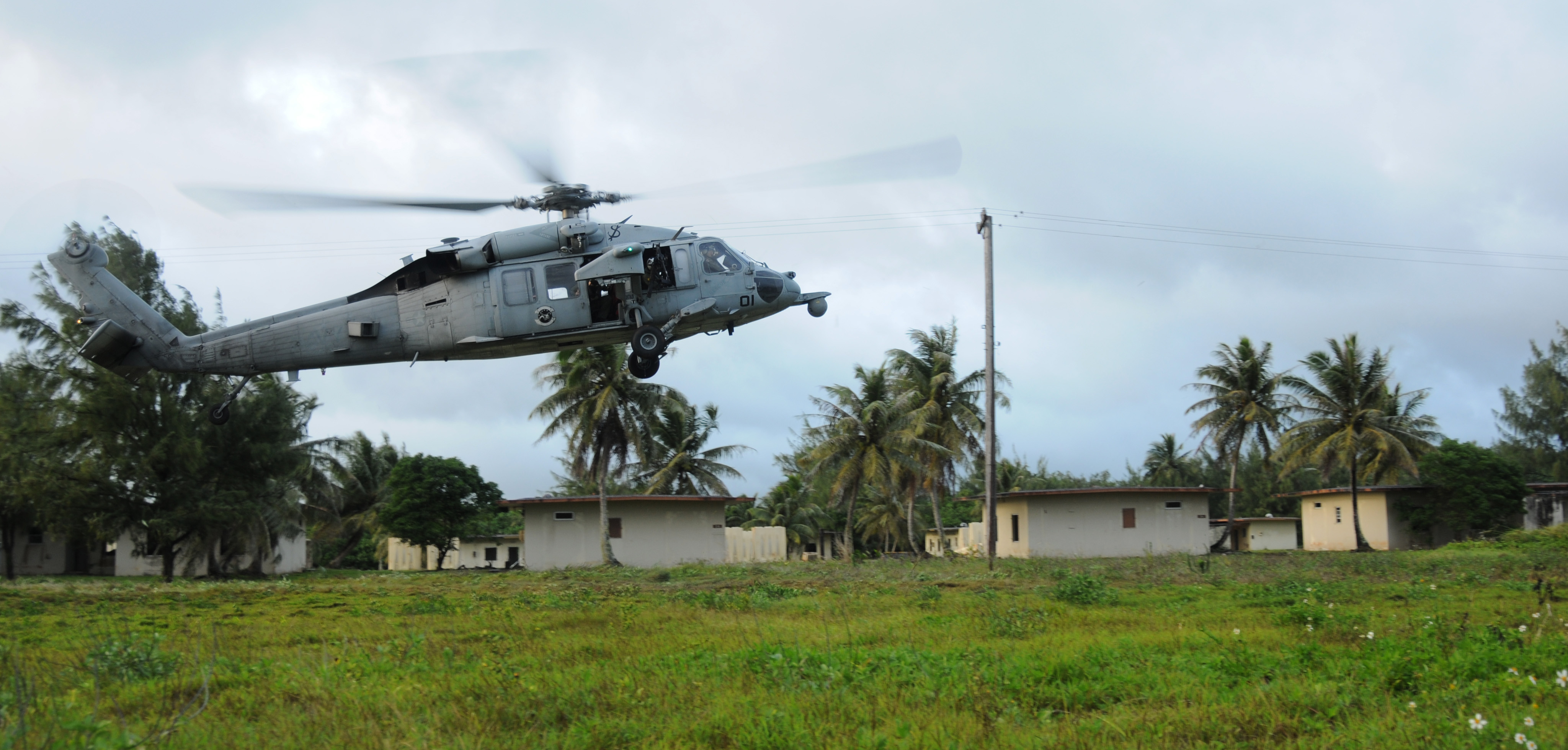 ANDERSEN AIR FORCE BASE, Guam- A MH-60 Seahawk from the Helicopter Sea Combat Squadron TWO FIVE prepares to land during a military working dog training exercise, here Feb. 16. This training prepares the handlers and dogs for deployment operations and makes sure the dogs and handlers can instantly go to work after touching down.(U.S. Air Force photo/Senior Airman Carlin Leslie)