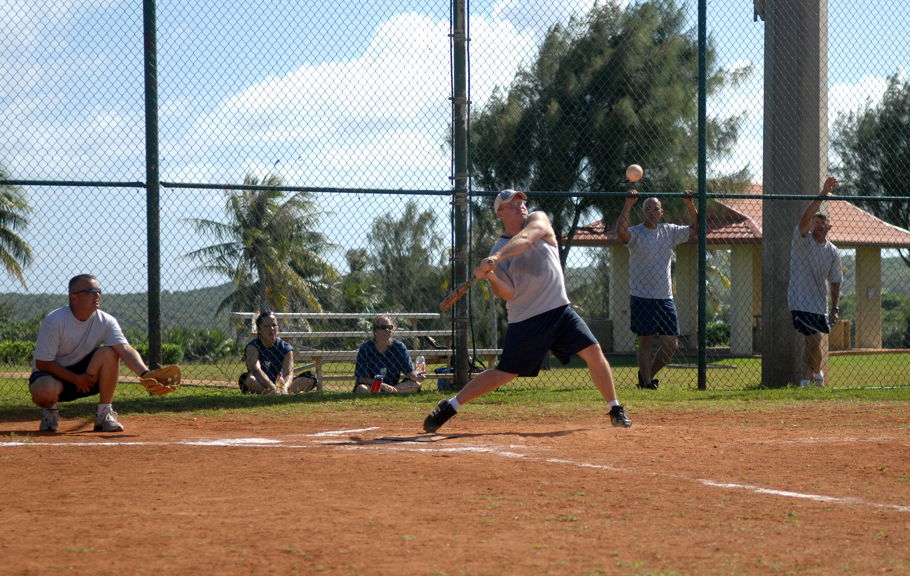 Tech. Sgt. Michael York, 36th Communications Squadron, bats during a baseball game at the Team Andersen Challenge Dec. 14. (U.S. Air Force photo by Senior Airman Miranda Moorer)
