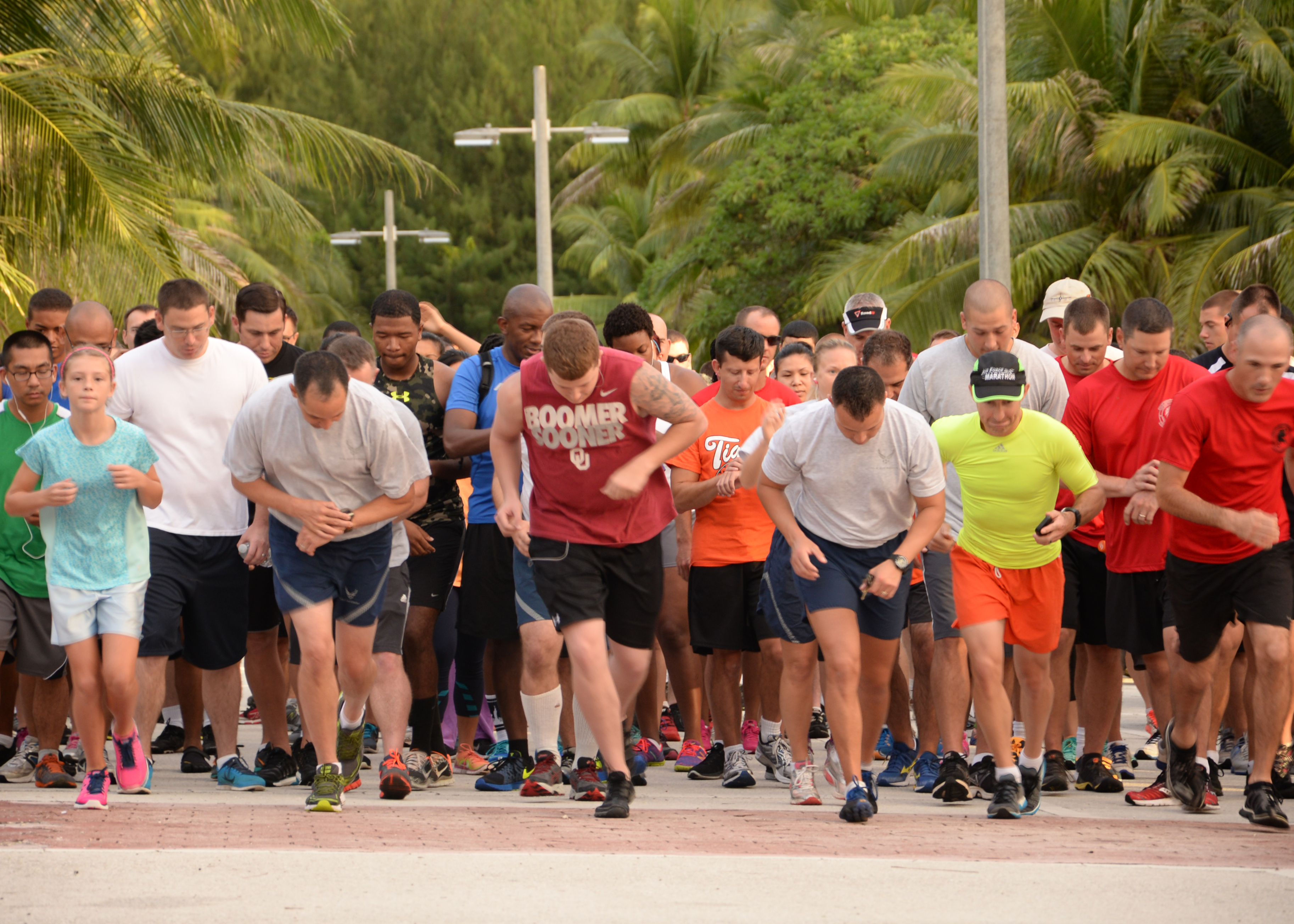 Members of Team Andersen take off during the Remembering our Heroes 5k at Tarague Beach Sep. 11, 2014 on Andersen Air Force Base, Guam. Approximately 200 runners participated in the 5k run and included members from all branches of service. (U.S. Air Force photo by Senior Airman Cierra Presentado/Released)